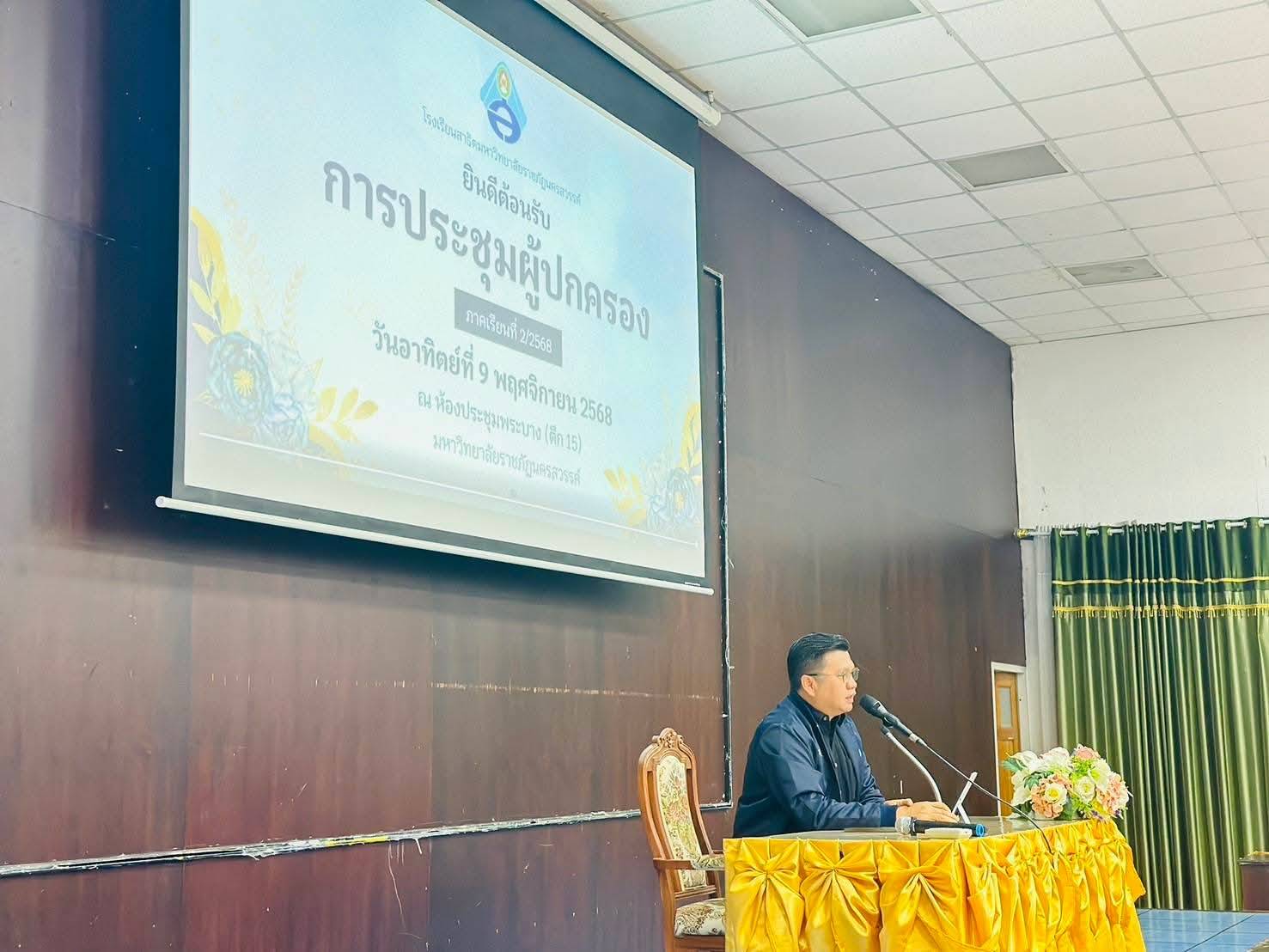 ผู้ช่วยศาสตราจารย์ ดร.ปพนสรรค์ โพธิพิทักษ์ ผู้อำนวยการโรงเรียนสาธิตมหาวิทยาลัยราชภัฏนครสวรรค์ และคณะผู้บริหาร พร้อมคณะครู ได้นำเสนอการบริหารงานในด้านต่างๆ และกิจกรรมที่เสริมทางด้านการเรียนการสอน อีกทั้งให้ผู้ปกครองได้เสนอความคิดเห็นในการประชุมผู้ปกครอง ของภาคเรียนที่ 2 ปีการศึกษา 2568 ในครั้งนี้ ณ ห้องประชุมพระบาง อาคาร 15 มหาวิทยาลัยราชภัฏนครสวรรค์